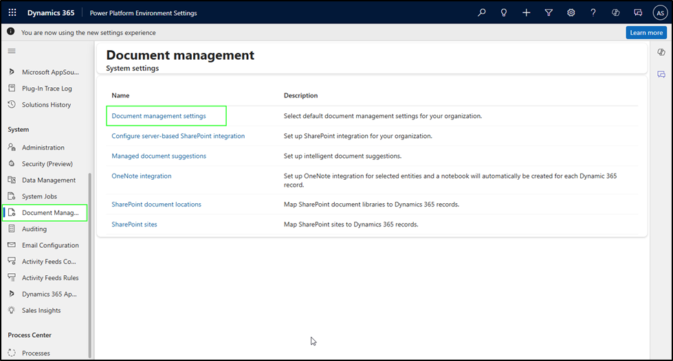 Confirm if you have enabled the Contact entity for SharePoint integration in the document management settings. If not, please follow the steps outlined below: