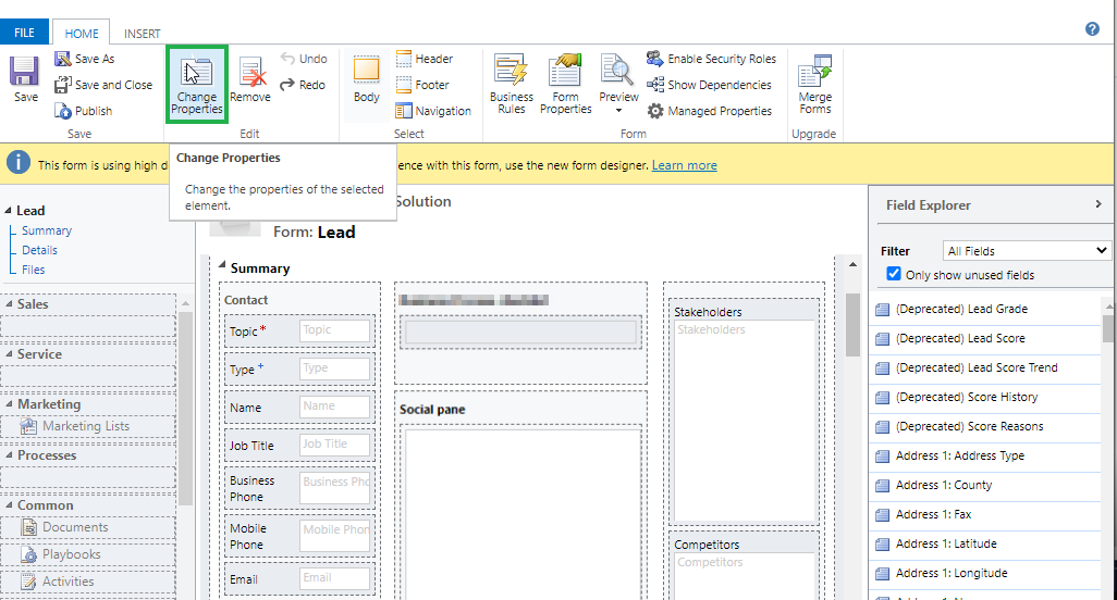Navigate to Entities --> Lead --> Forms.