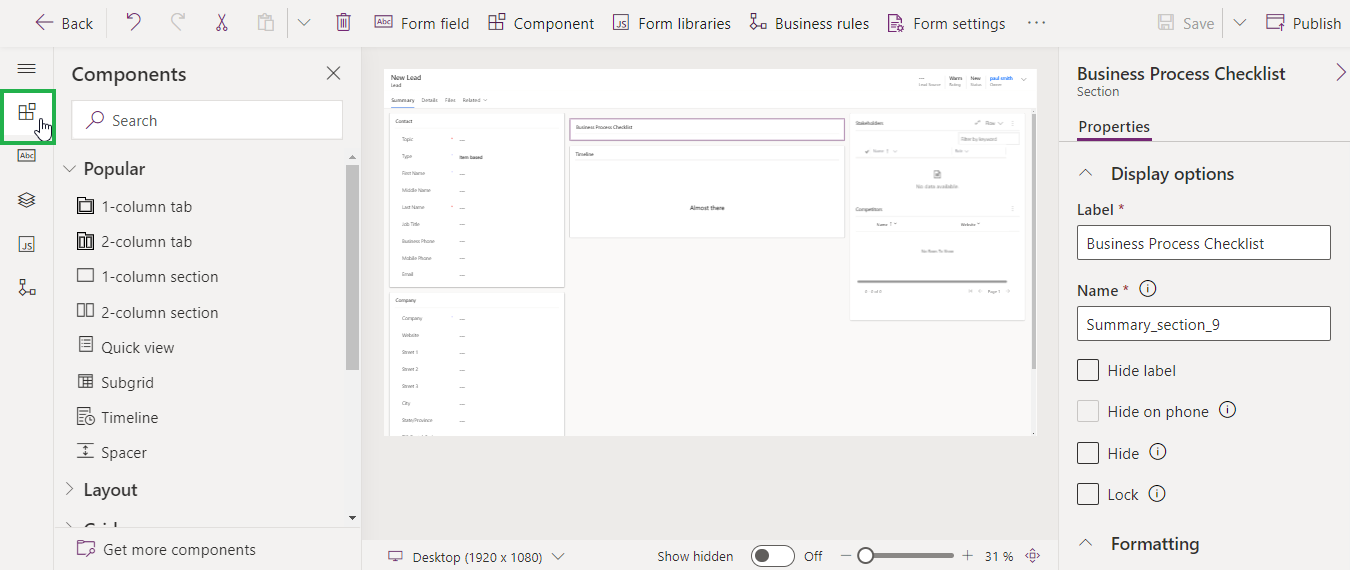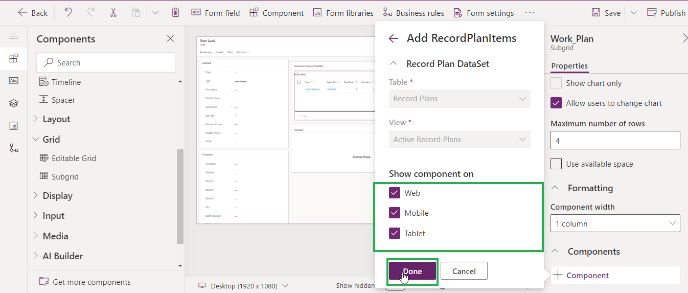 Select the required "Show component on" options and click on ‘Done’.