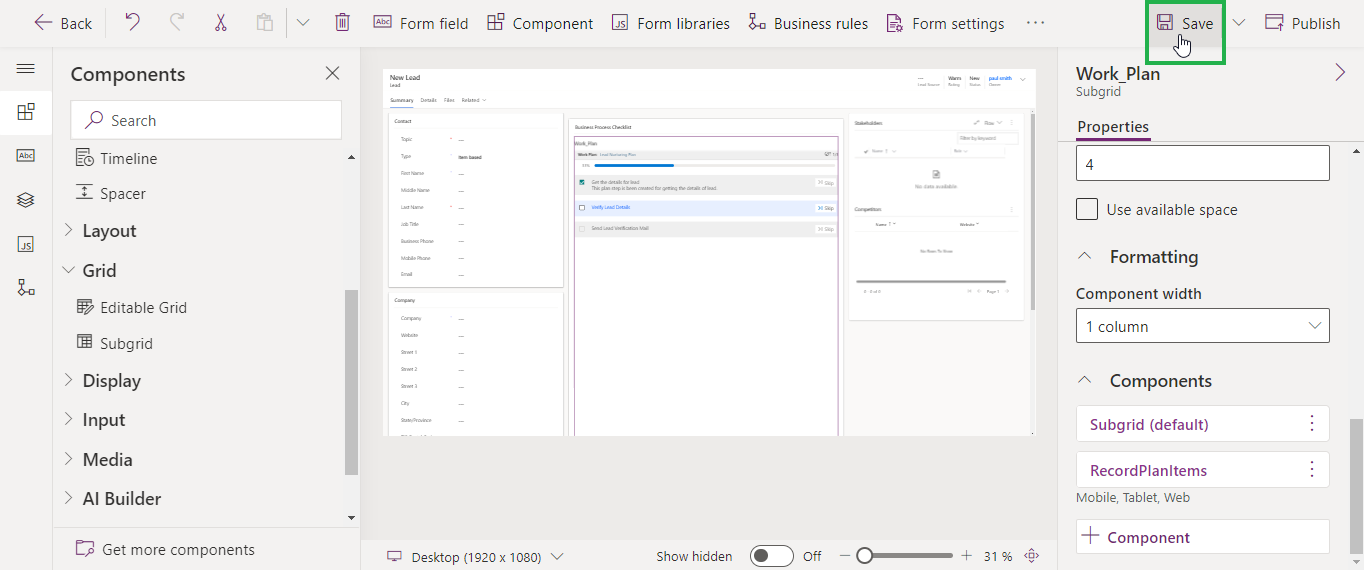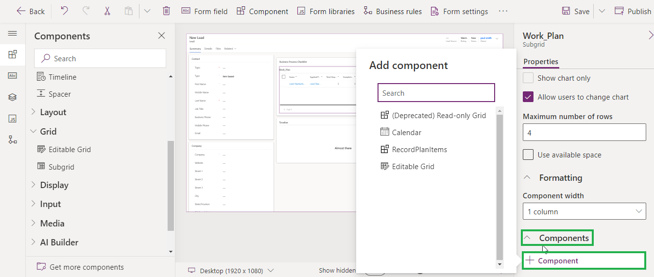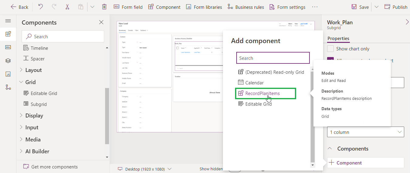 Select (or Add) the section where you want Plan on Record Form.