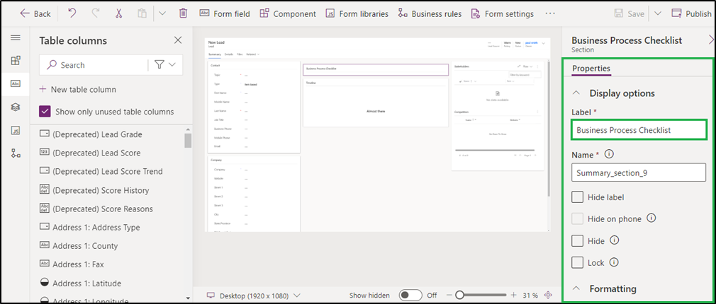 This will open a 'Section Properties' form, where you can modify section’s properties.