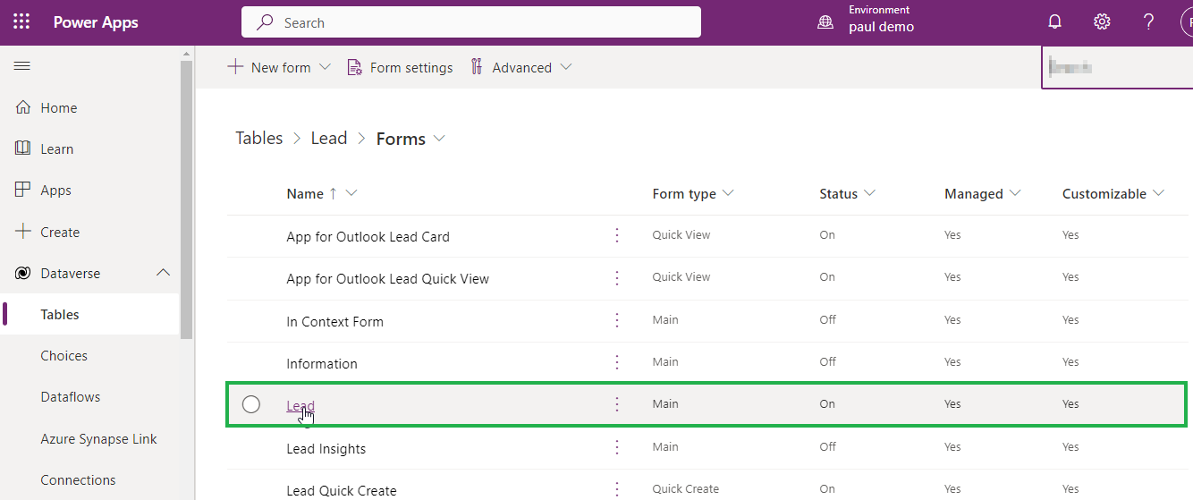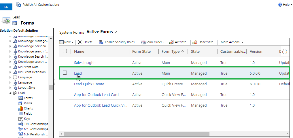 Click on Lead Entity with Form Type Main.