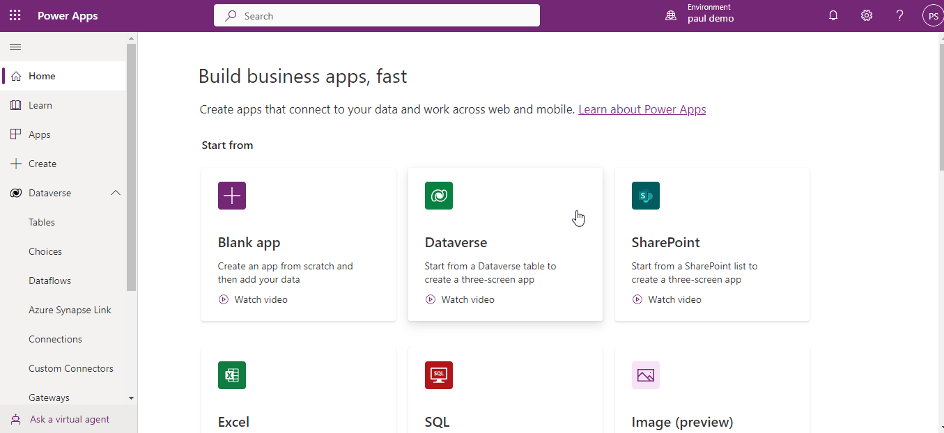 Go to https://make.powerapps.com/.