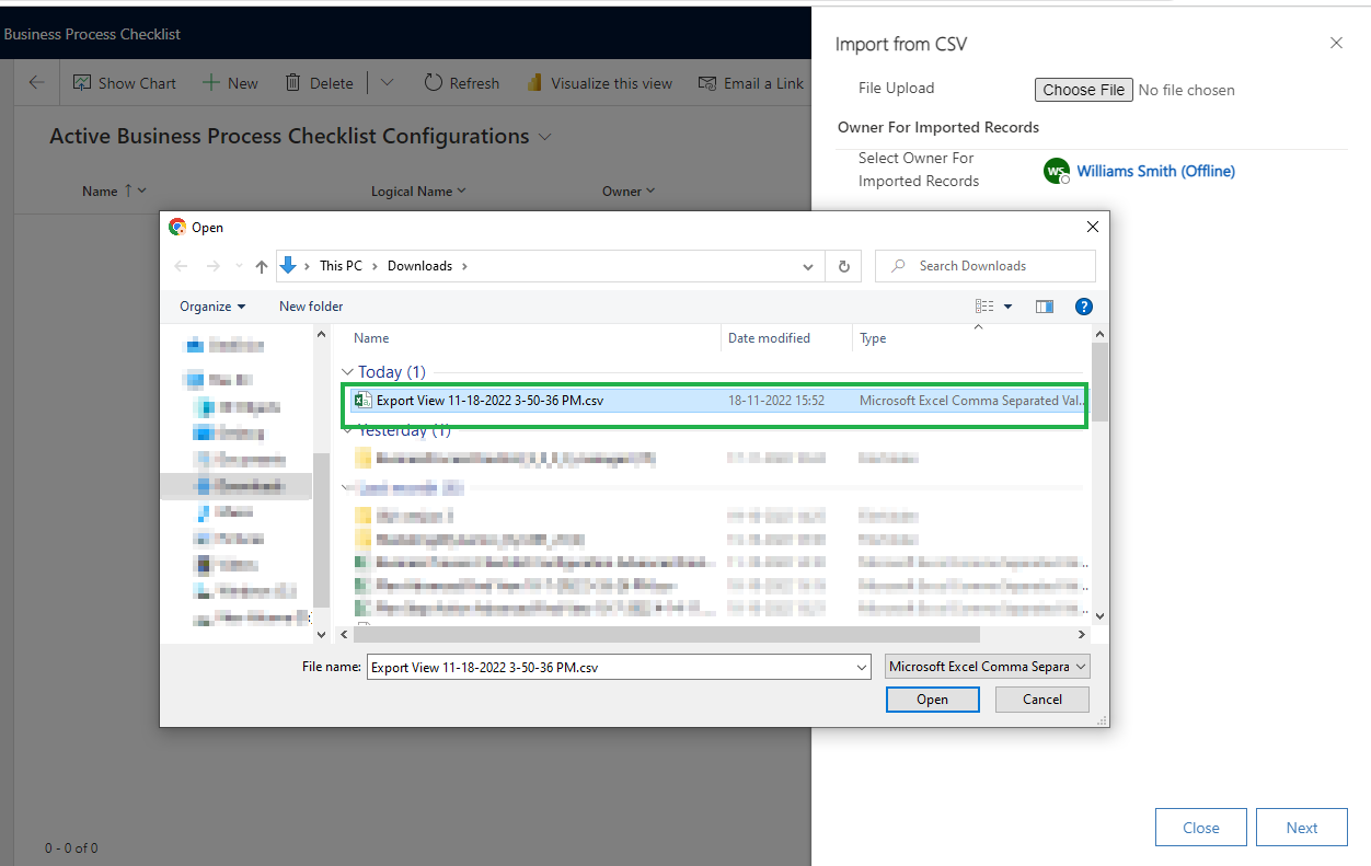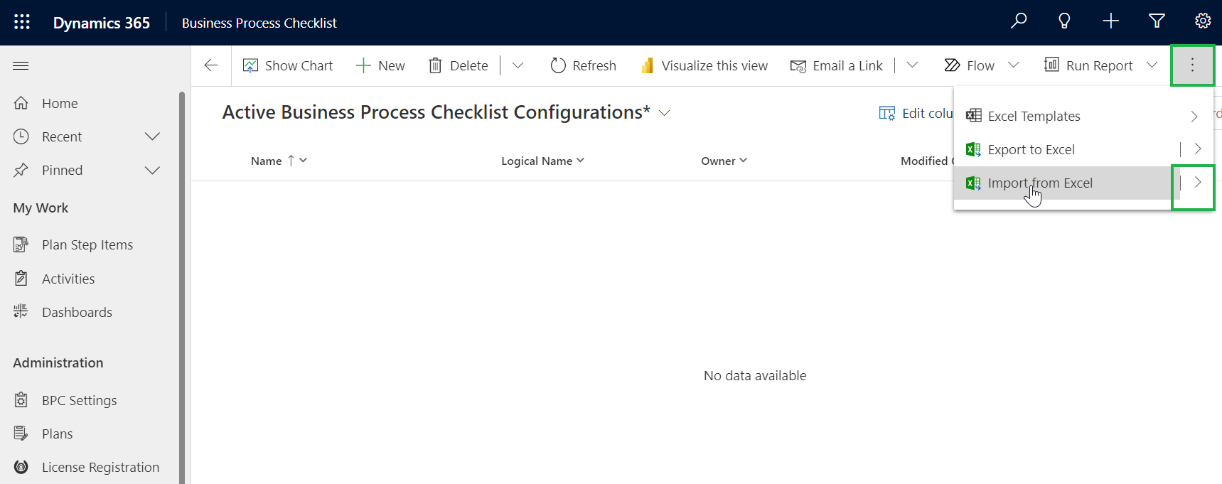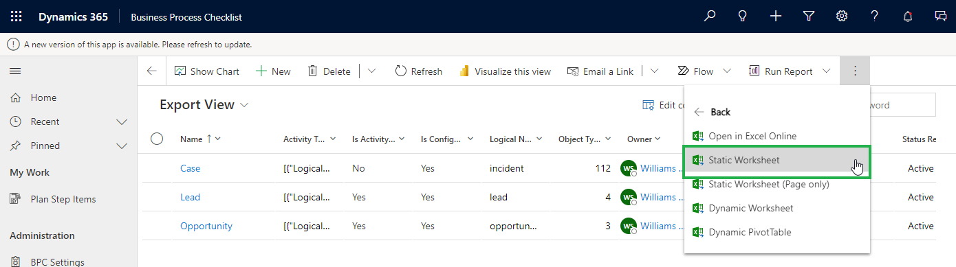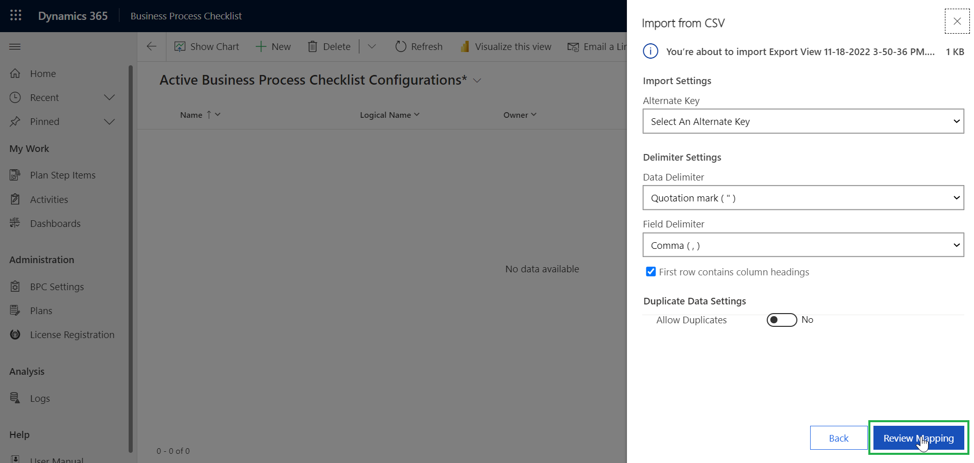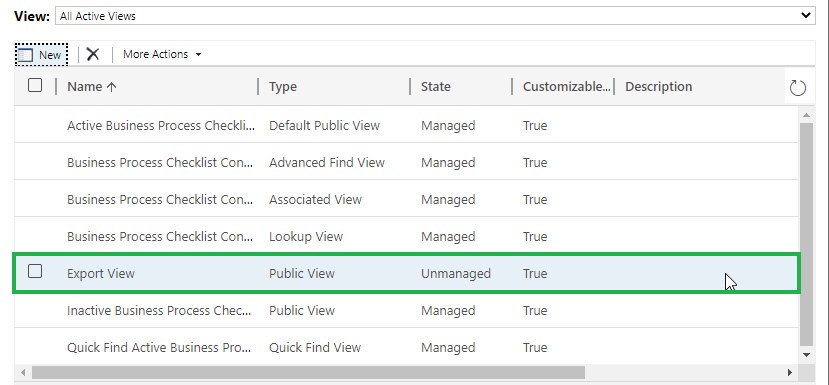 * Go back to **Business Process Checklist** application --> Business Process Checklist **Configurations** --> Select the **Export View.**