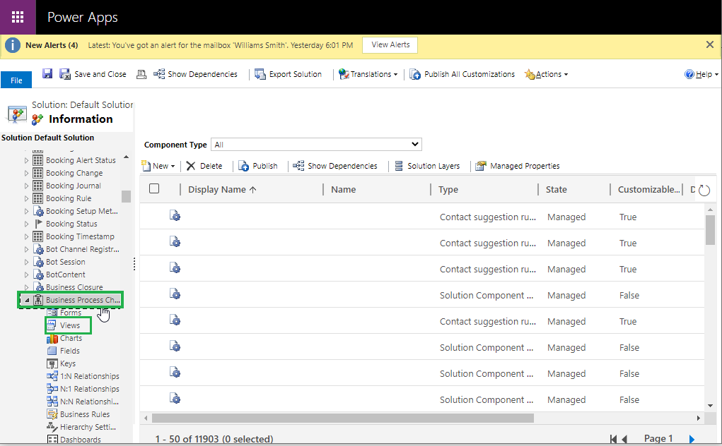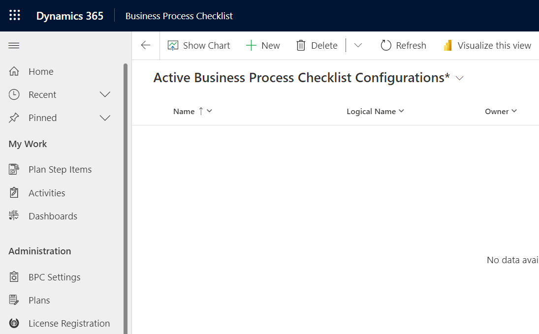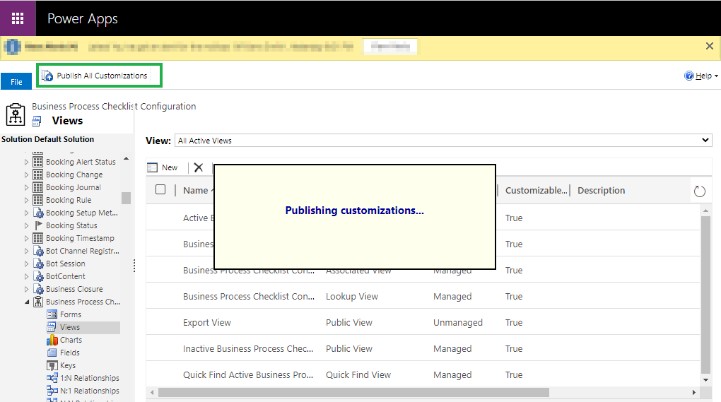* Navigate to **Entities** --> **Business Process Checklist** --> **Views**.