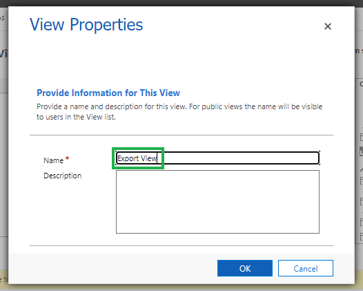 * Enter an appropriate name for the view and click **'Ok'** to proceed.