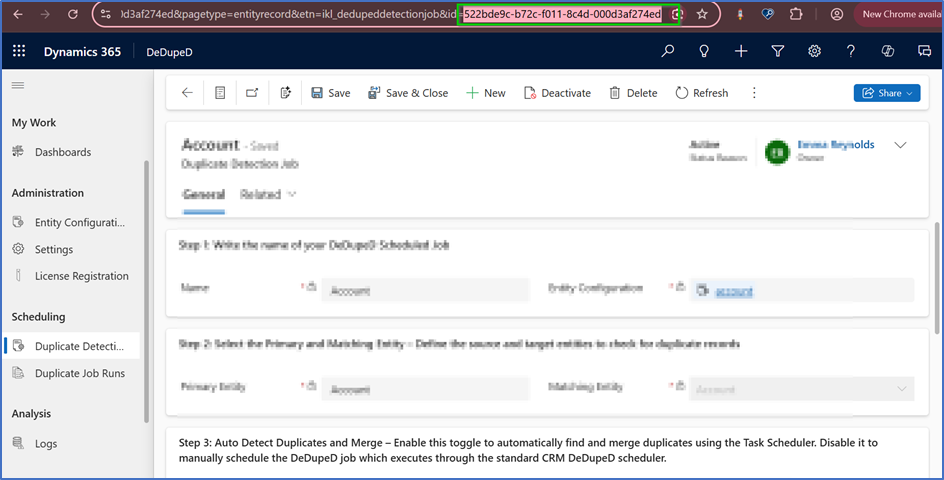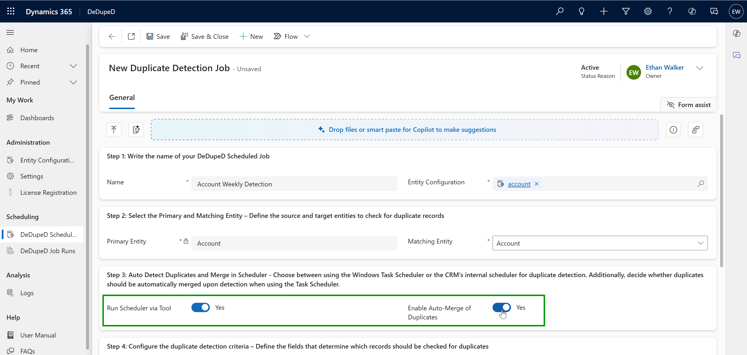 * Navigate to Auto Detect Duplicates and Merge in Scheduler