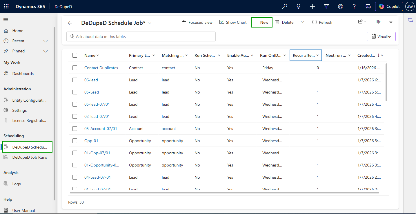 DeDupeD → DeDupeD Schedule Jobs → New