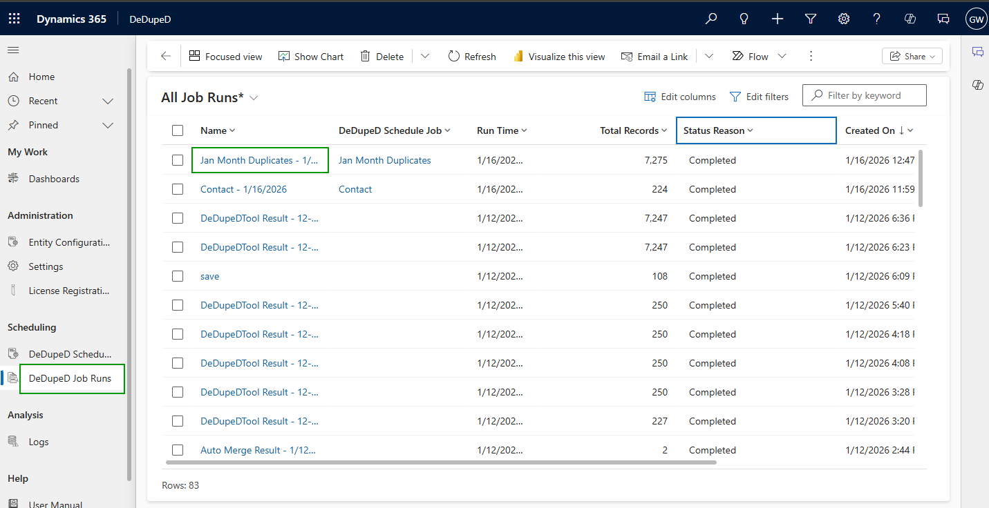 DeDupeD → DeDupeD Job Runs