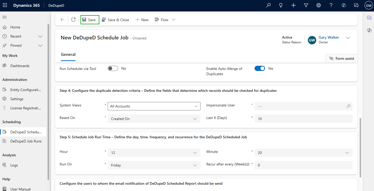 This is how you can schedule duplicate detection job and mail it’s results to desired users with DeDupeD App.