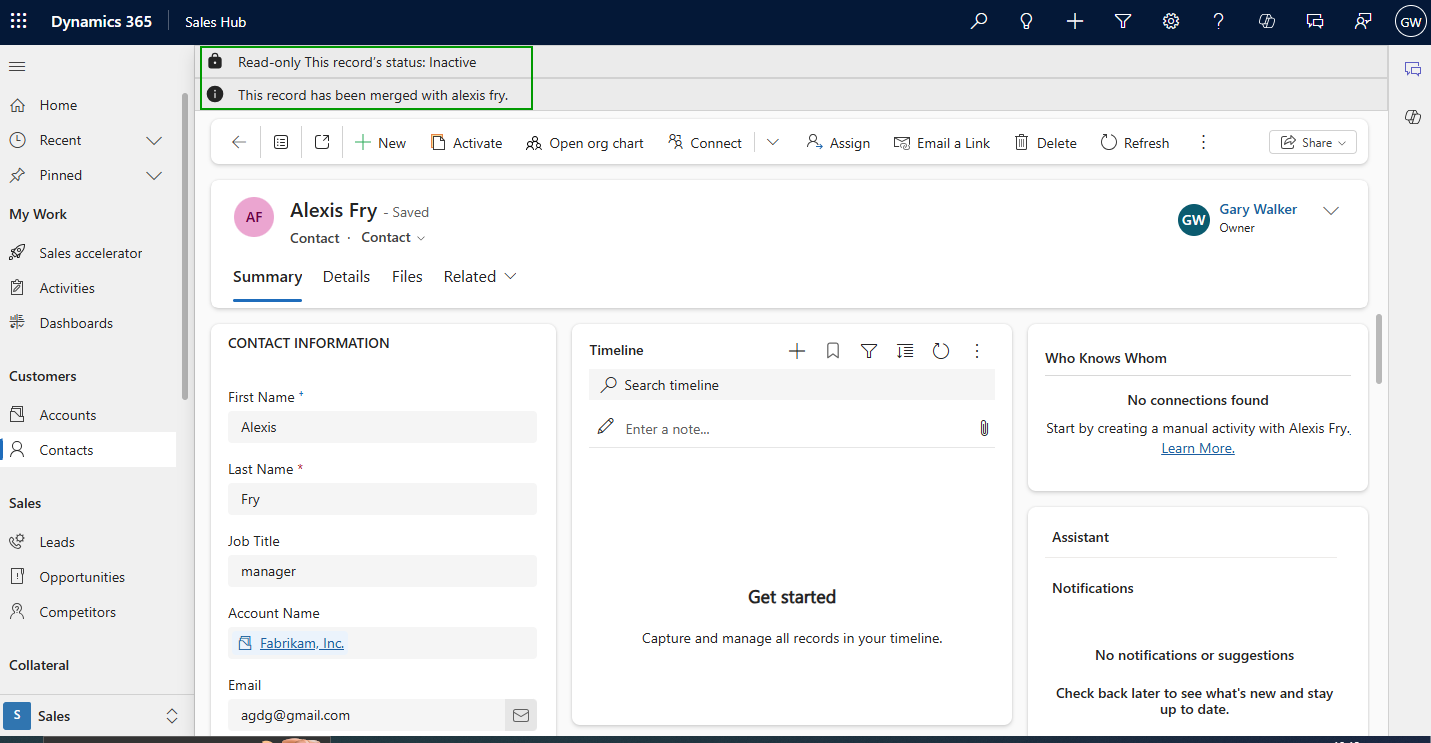 Open any record that was merged.