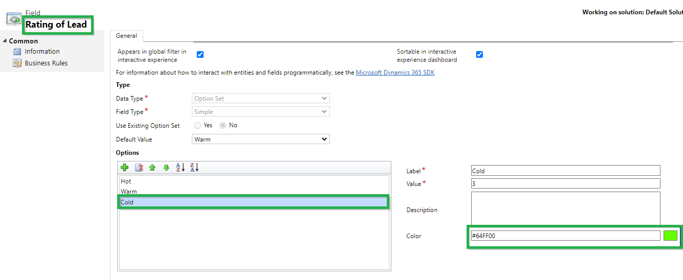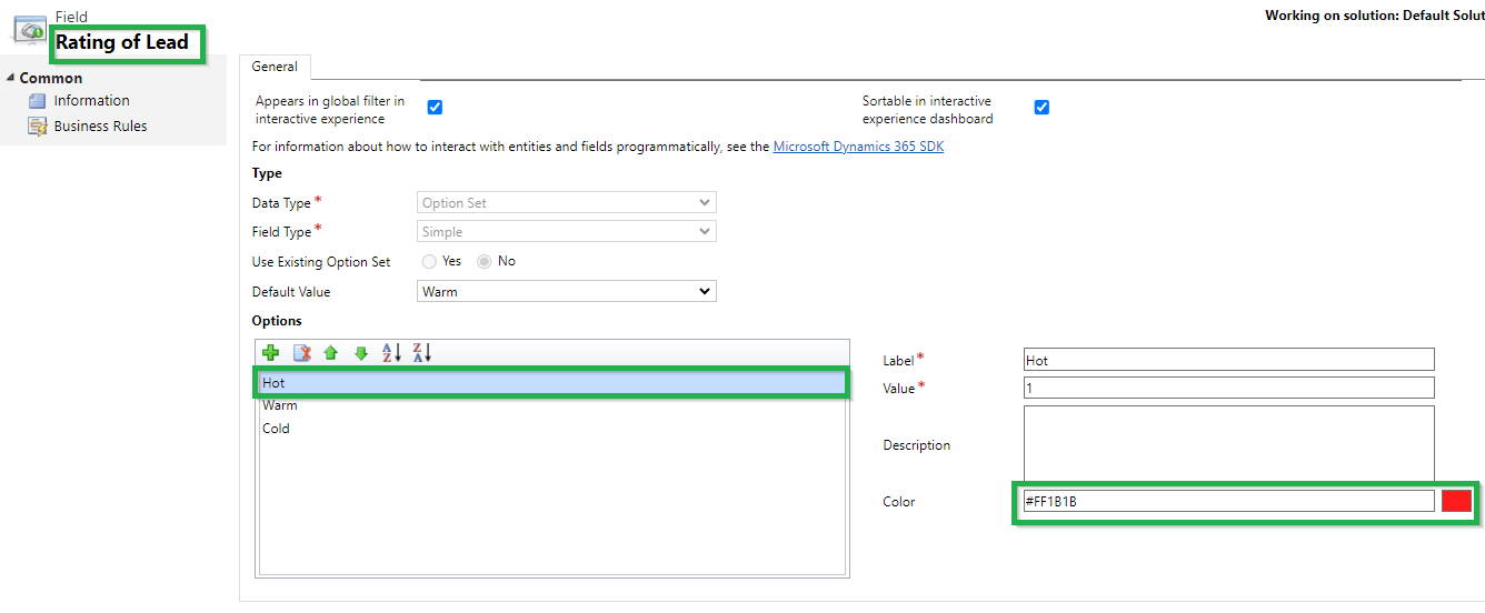 In this instance, we are choosing to colour the Lead records depending upon their rating.