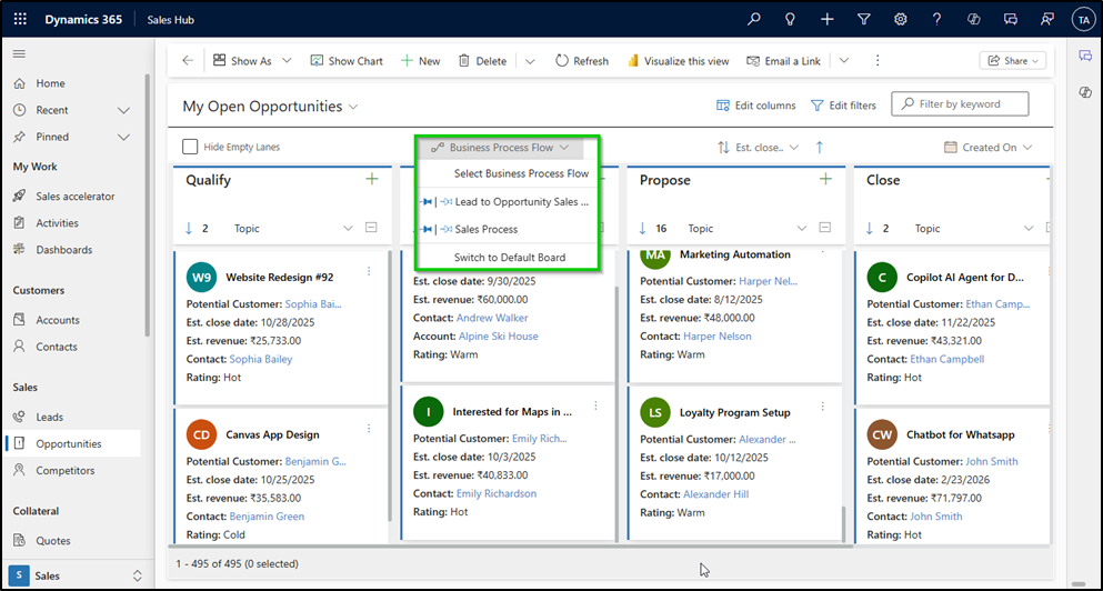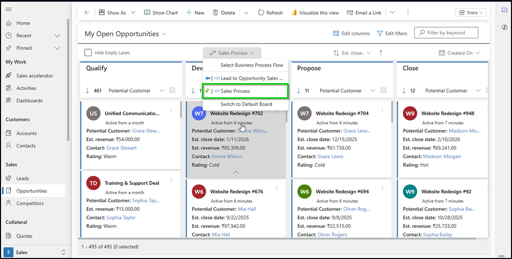 Pinned Business Process Flow (BPF) on Kanban Board — Global & Personal Pinning Explained
