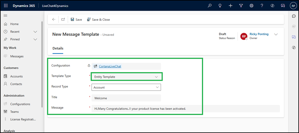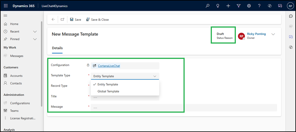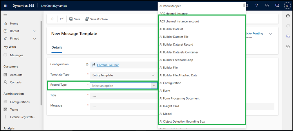 Select Record Type: Begin by choosing the record type for which you want to create the message template.