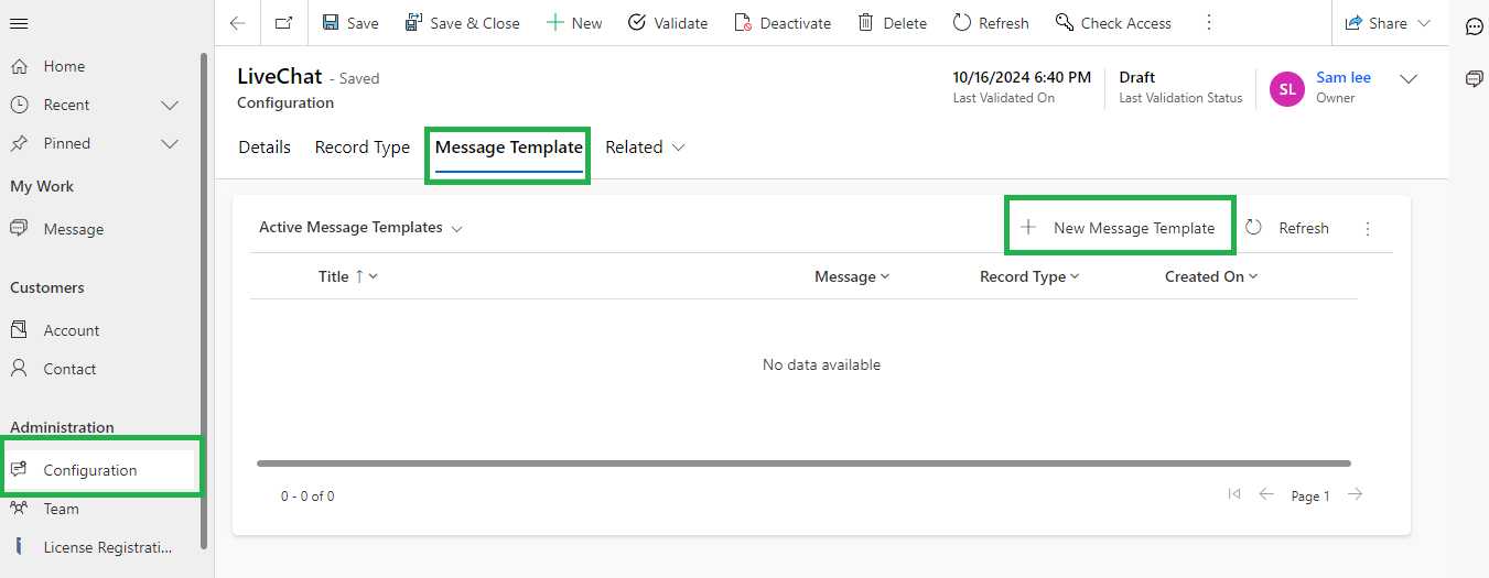 Create a New Message Template: Click on the "+ New Message Template" button to start creating a new template.