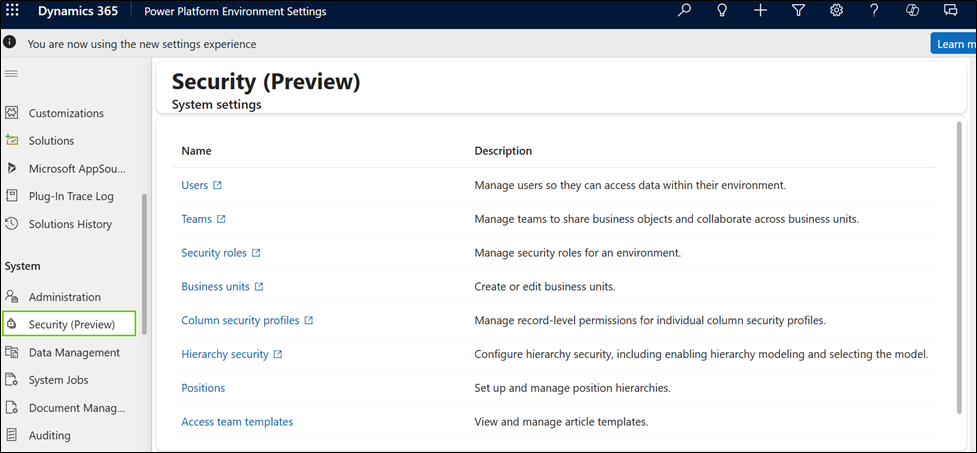 * Click on any one of the security roles --> Click **Ok**.