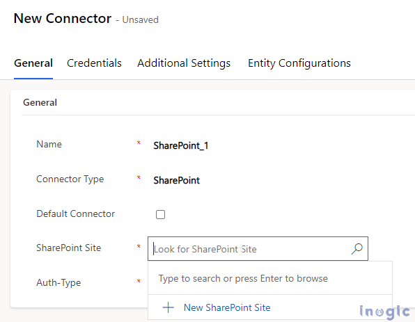 * **Connector Type:** Choose SharePoint from the drop-down.&#x20;