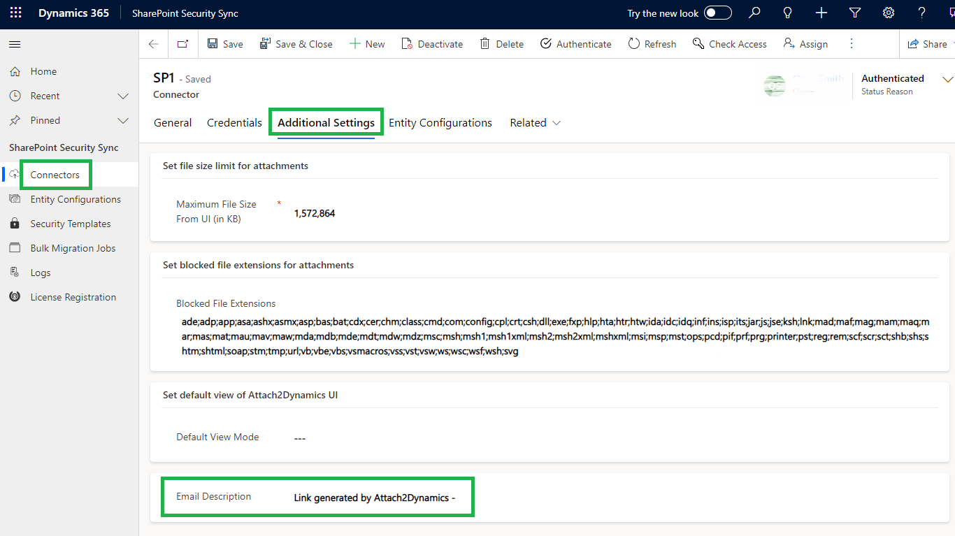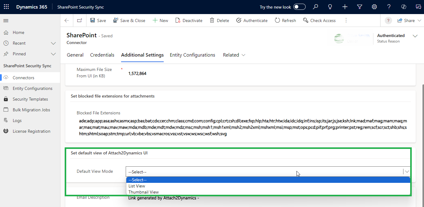 * **Set file size limit for attachments in Attach2Dynamics UI–** Maximum file upload size can be **1.5 GB.**
