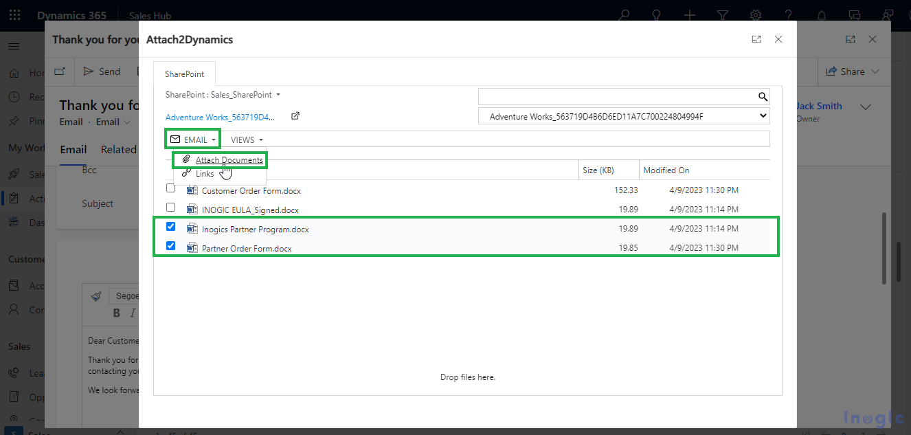 • Select the desired files and click on **‘Attach Documents’** option on the **‘EMAIL’** Dropdown.