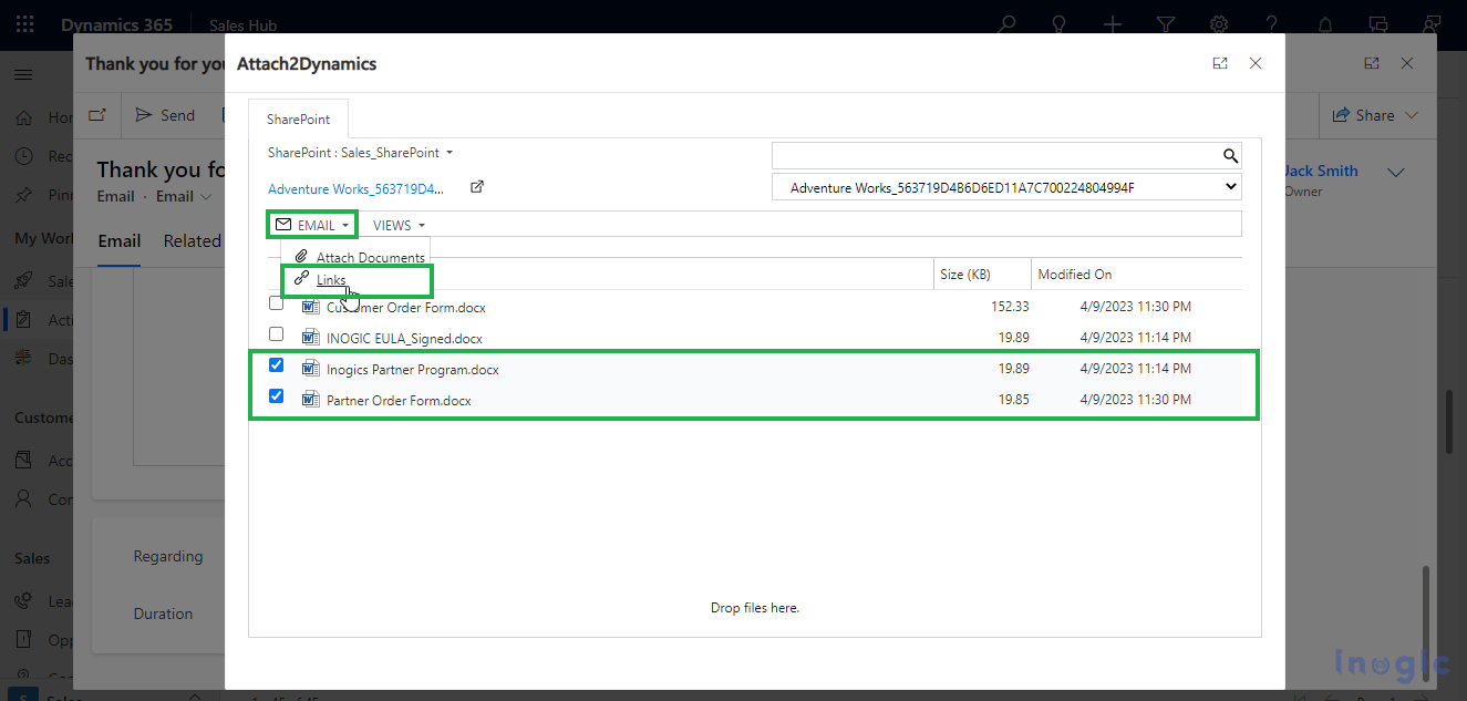 • Now select the required **files** and attach them as **links or attachments** on Email form.
