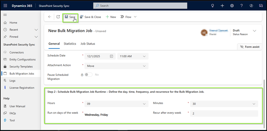 4\.      Scroll down to Step 2; this is where you can create a R**ecurring Bulk migration Job**. Fill the respective fields.<br>