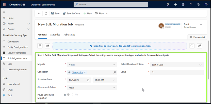 * **It is necessary to assign SharePoint Security Sync Administrator/SharePoint Security Sync User Security role to use bulk migration job.**
