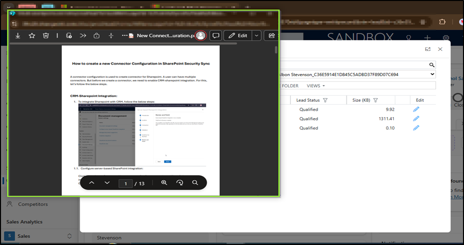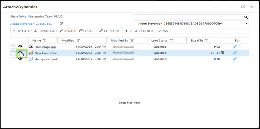 By simply clicking the Preview icon in the Attach2Dynamics UI, a preview window opens for the selected file. This allows users to view the file directly without downloading and opening it separately.