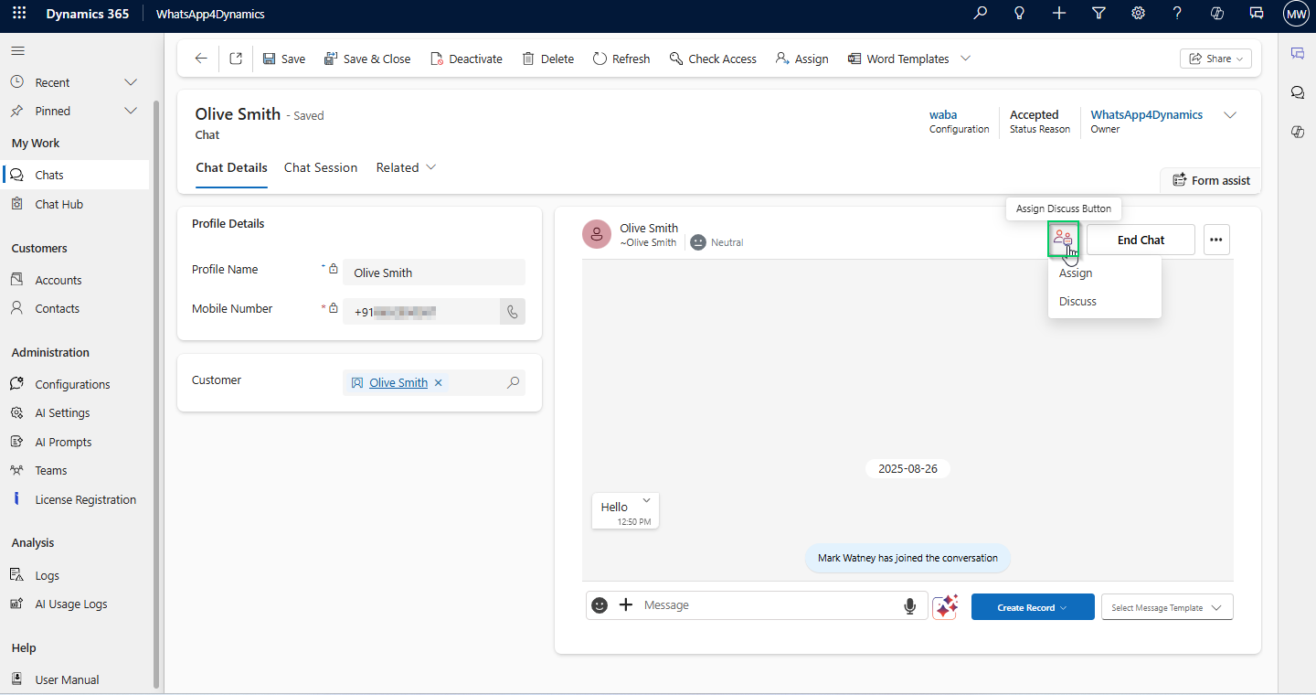 1. Click the **Assign/Discuss icon** within the chat.