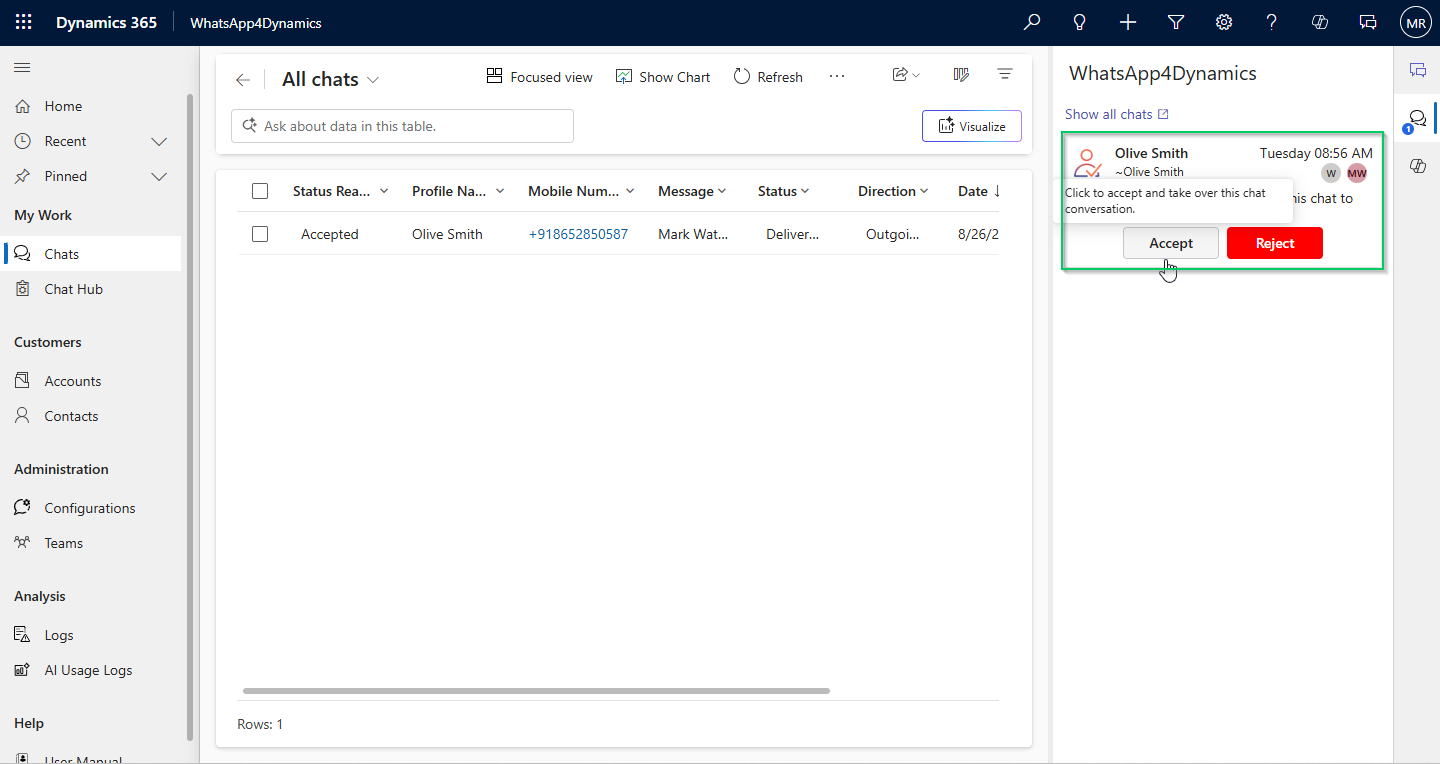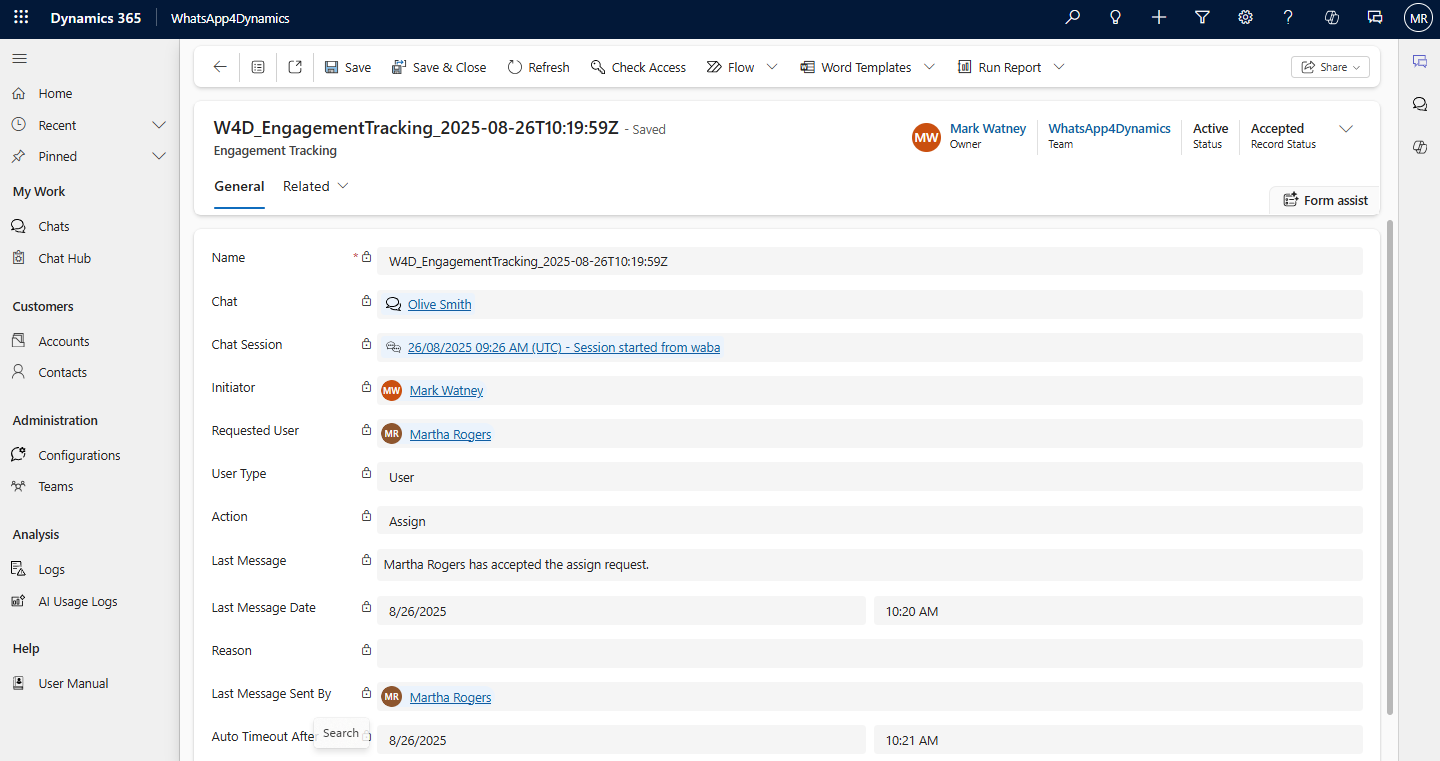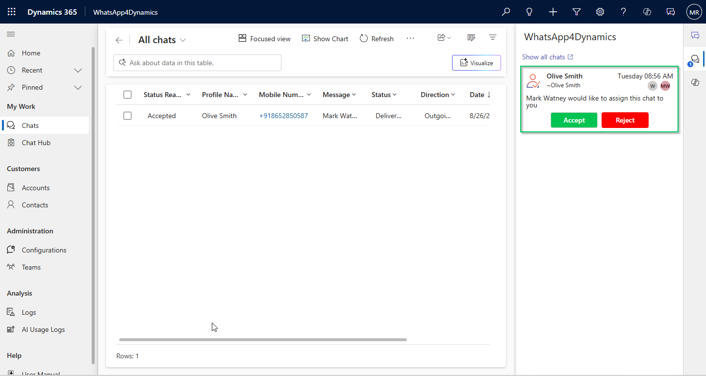 * You can also directly assign chat sessions to other users without sending an assignment request by using the OOB (Out-of-the-Box) Assign button.